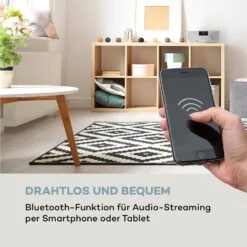 - Anschlüsse: 1x 3,5-mm-Klinken-AUX-Eingang, 1x USB-Anschluss