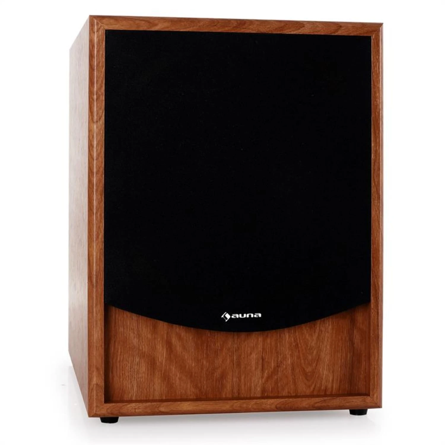 Für ein harmonisches Zusammenspiel mit verschiedenen Wohneinrichtungen schmückt sich der auna Tieftonlautsprecher mit einer eleganten Formensprache, einem Gehäuse mit Walnuss-Finish sowie abnehmbarer Lautsprecherabdeckung.