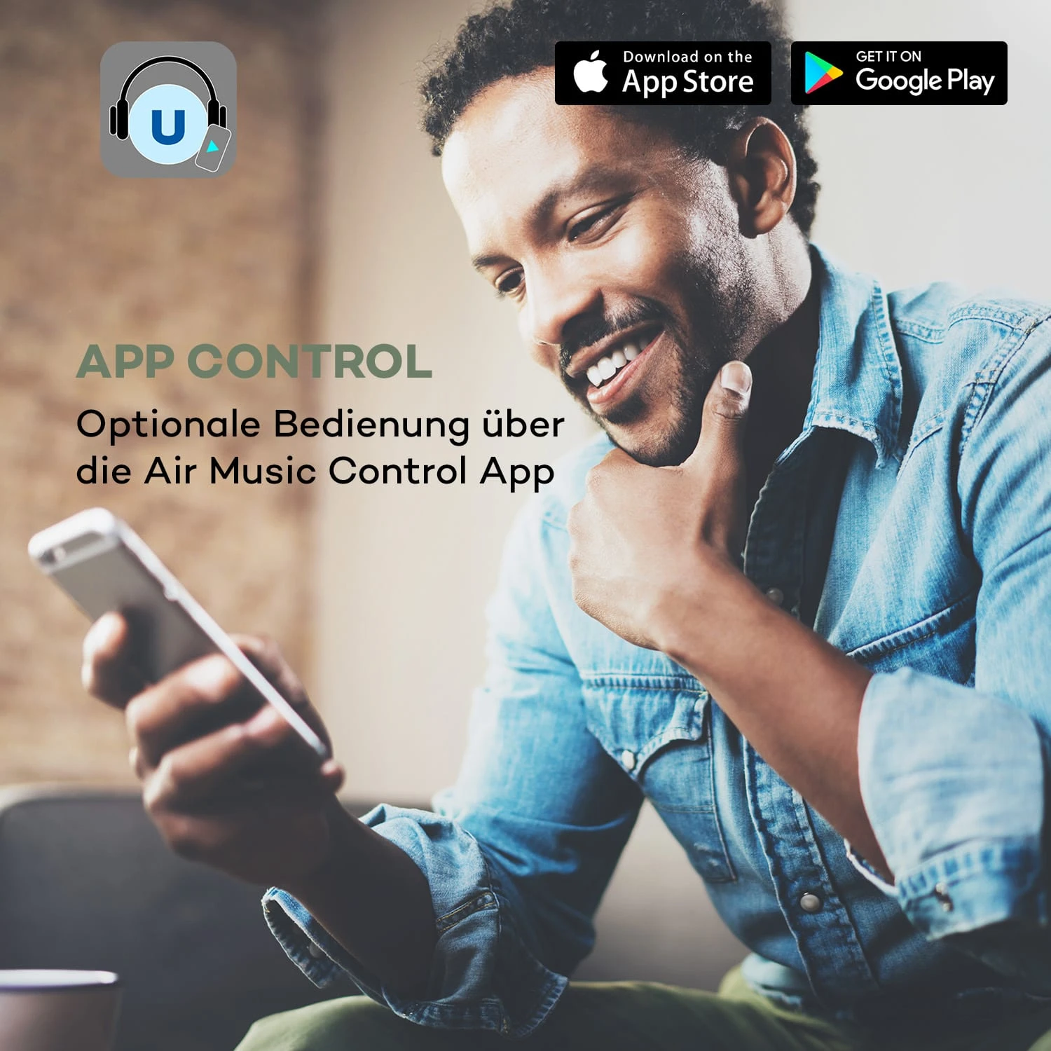 AUX-Anschluss und Bluetooth für das kabellose Streamen von Inhalten per Smartphone oder Tablet.
