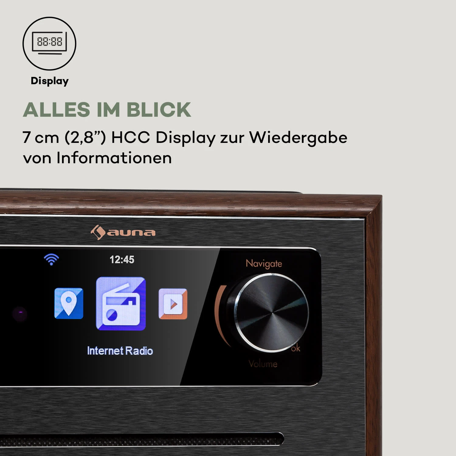 Der Würfel im eleganten Design mit einem Frontpanel aus Aluminium und einem Gehäuse in Holz-Look beherbergt ein WLAN-Internet-Radio sowie einen UKW-Tuner. Das Senderangebot ist enorm: Bis zu 10000 Internetradio-Stationen stehen einem weltweit zur Verfügung. Informationen wie Zeit, Titel oder Interpret werden zuverlässig und klar auf dem HCC Display angezeigt, sodass du nichts mehr verpasst. Die Bedienung erfolgt direkt am Silver Star CD Cube oder bequem per Fernbedienung von der Couch aus.