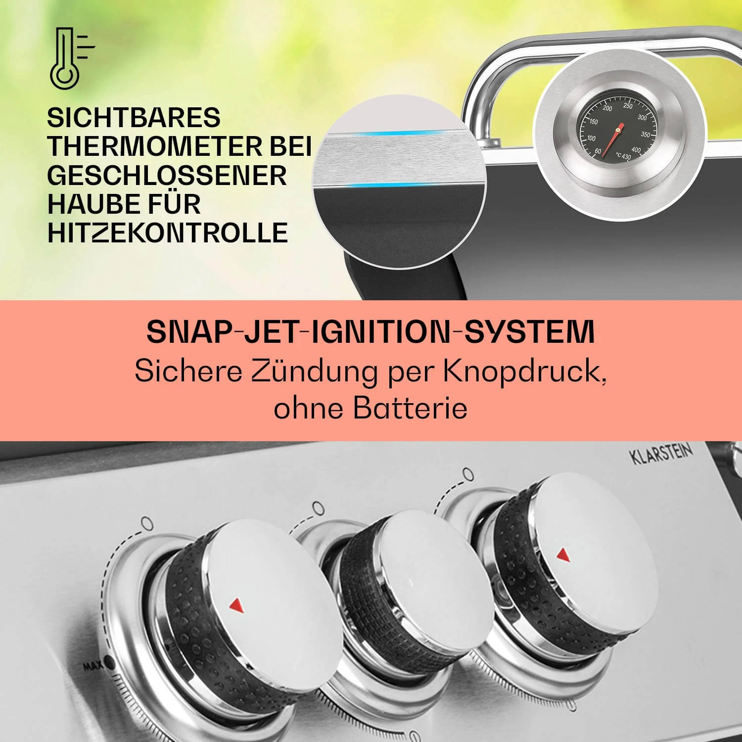 Tomahawk 3.1 S Gasgrill 3×3,6kW Brenner+2,7 KW 60x45cm Grill Edelstahl