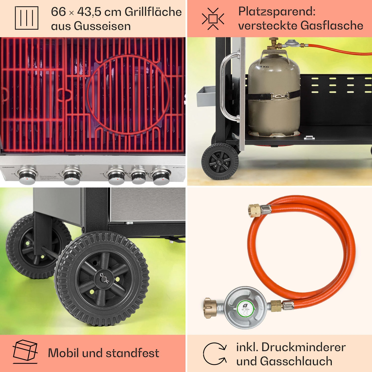 Tomahawk Gasgrill 4x3,6 KW + 2,7 KW Brenner 66x43,5 Cm Grill Edelstahl – Bild 7